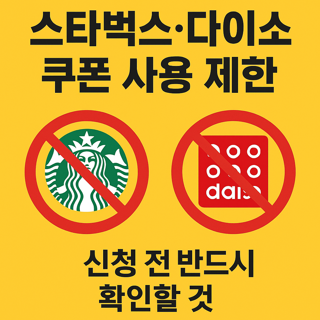 스타벅스는 직영점만 운영되므로 이번 정책에서 전면 제외되며, 다이소도 전체 매장 중 30% 미만만이 가맹점으로 등록되어 있어 ‘가능 매장’ 확인이 반드시 필요합니다.