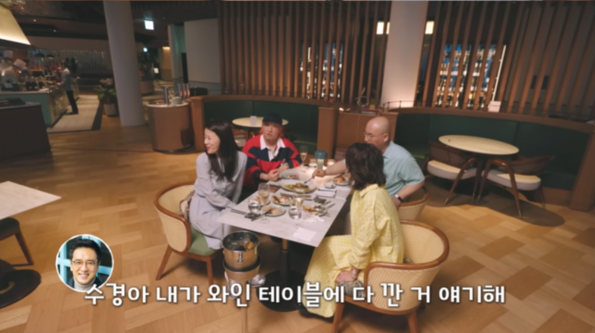 영상 중반, 김승우는 “내가 와인 테이블 다 깐 이야기 좀 해달라”며 농담처럼 운을 띄웠고,