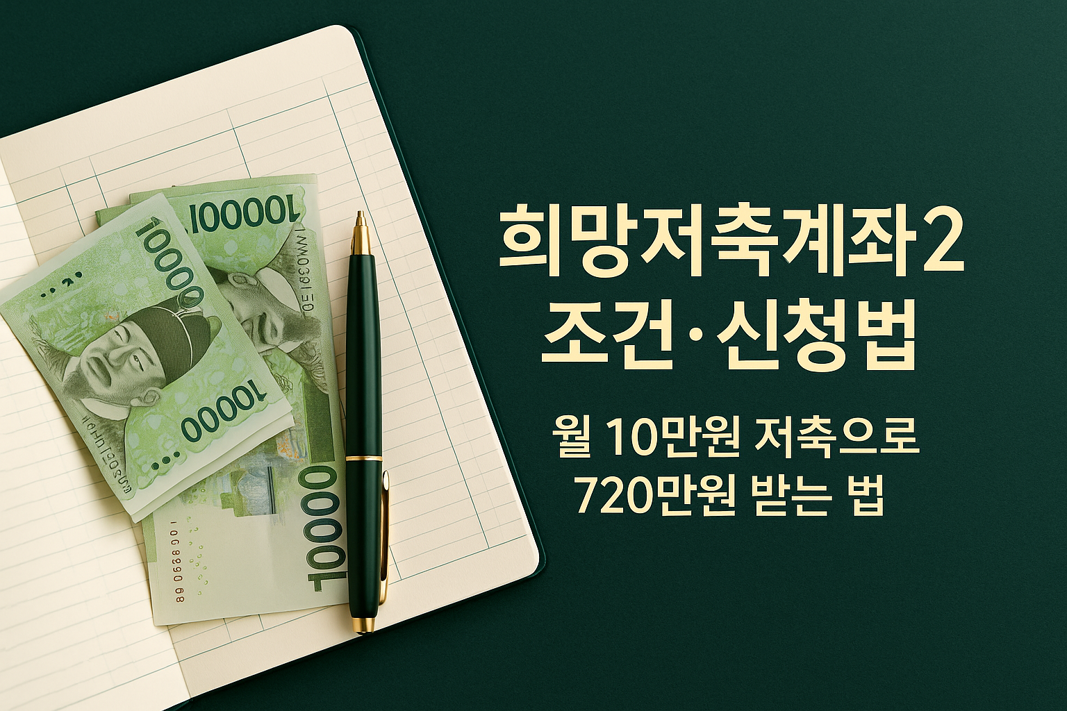 정부가 저소득 근로 가구의 자산 형성을 돕기 위해 운영 중인 대표적인 제도가 바로 희망저축계좌2입니다. 2025년 7월 현재 기준으로, 차상위계층이라면 누구나 신청 가능하며 3년간 매월 10만 원씩 저축하면 정부가 동일한 금액을 더해 총 720만 원까지 적립할 수 있습니다. 이 제도는 단순한 저축이 아니라, 자립 기반을 만들고 목돈을 형성하기 위한 복지정책의 핵심입니다. 이번 글에서는 희망저축계좌2 조건·신청법에 대해 실제 기준으로 자세히 정리해드립니다.