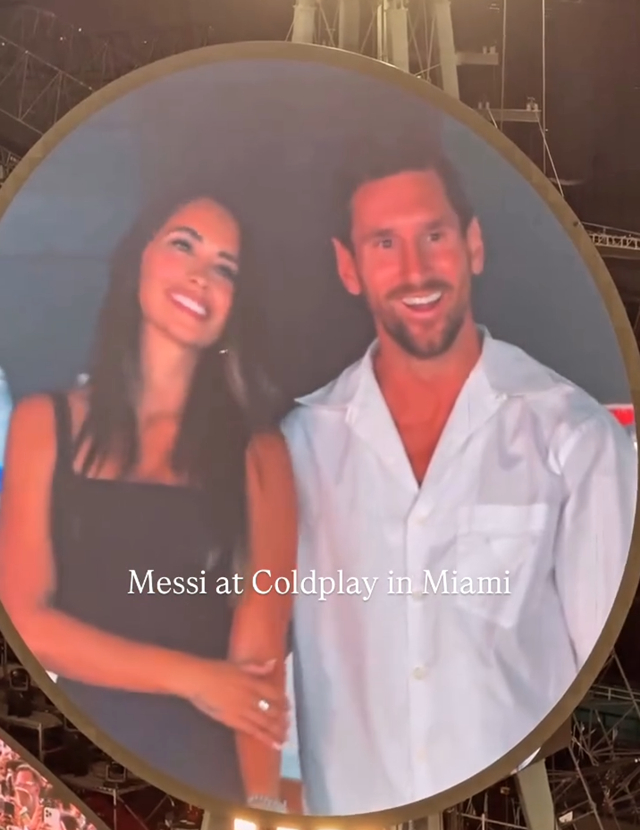 콜드플레이 콘서트장에서 ‘축구의 신’ 리오넬 메시 부부가 카메라에 포착되며 전 세계 팬들의 시선을 사로잡았다. 메시와 그의 아내 안토네야 로쿠소는 미국 마이애미 하드록 스타디움에서 열린 콜드플레이 공연을 관람했다. 공연 중 ‘키스 캠’에 메시 부부가 등장하자 관중은 함성과 박수로 반응했다. 이에 메시 부부는 멋쩍은 듯 미소를 지으며 손을 흔들어 화답했다.